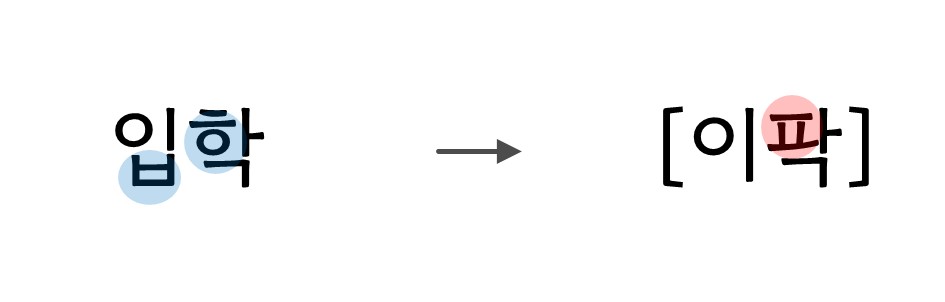 | 입학 | [名]入學 | ㅂ+ㅎ=ㅍ | [이팍] |